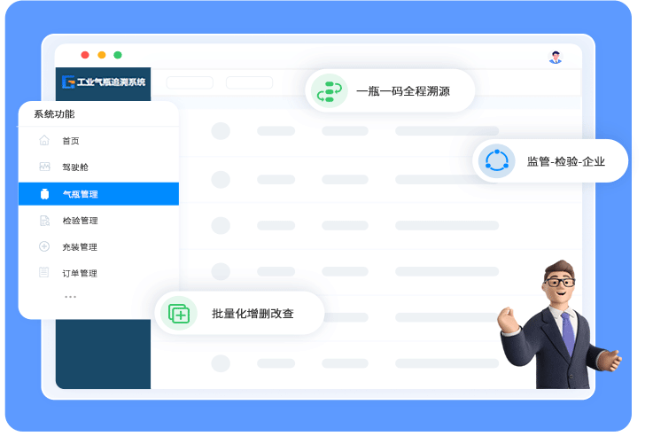 对气瓶的充装、配送、使用、检验、报废全过程进行数字化监控,确保来月可查、去向可追。