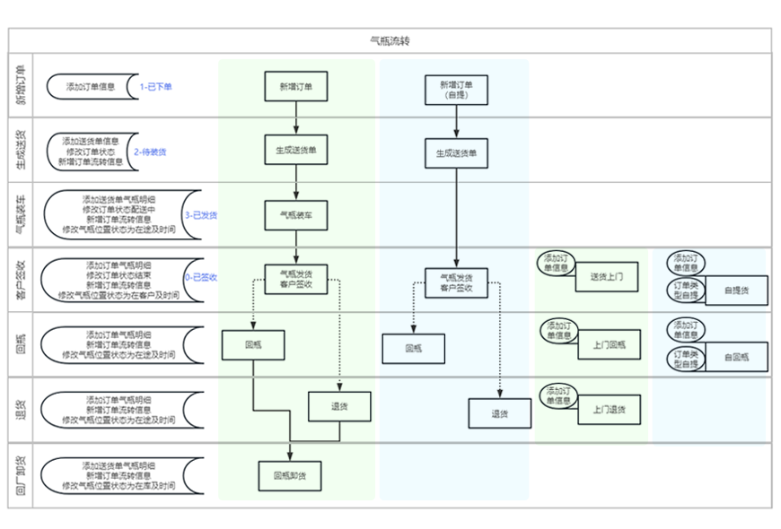 记录气瓶所处流程、动向、时间、状态