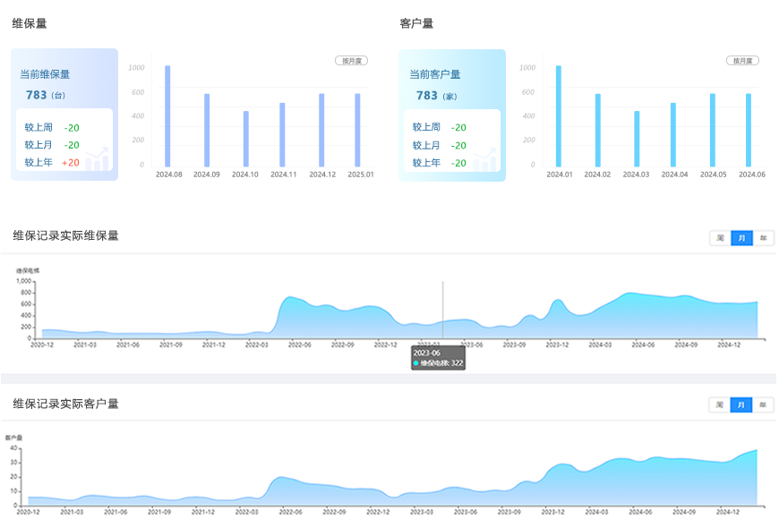 维保电梯、客户量历史趋势可查
